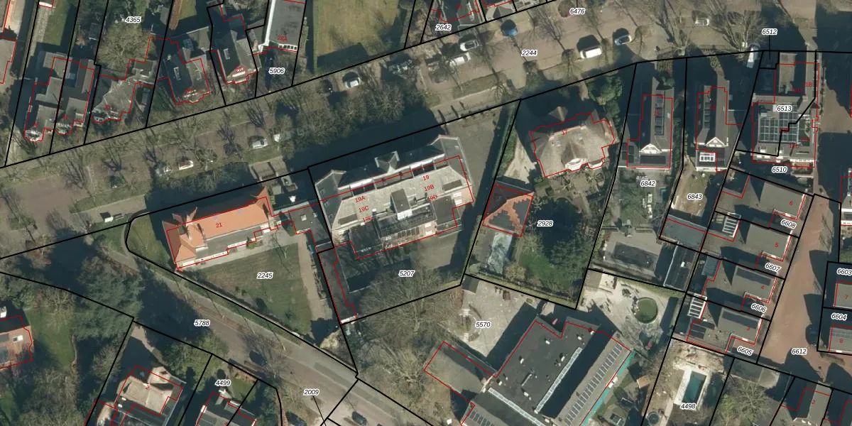 Het perceel waarop Stationsstraat 19-D staat heeft een oppervlakte van 1458 m². Dit is een zeer groot perceel. De perceeloppervlakte wordt geregistreerd door het Kadaster. Gedetailleerde informatie over de maten van dit perceel kunt u vinden in het rapport Kadastrale kaart met maatvoering van Stationsstraat 19-D.