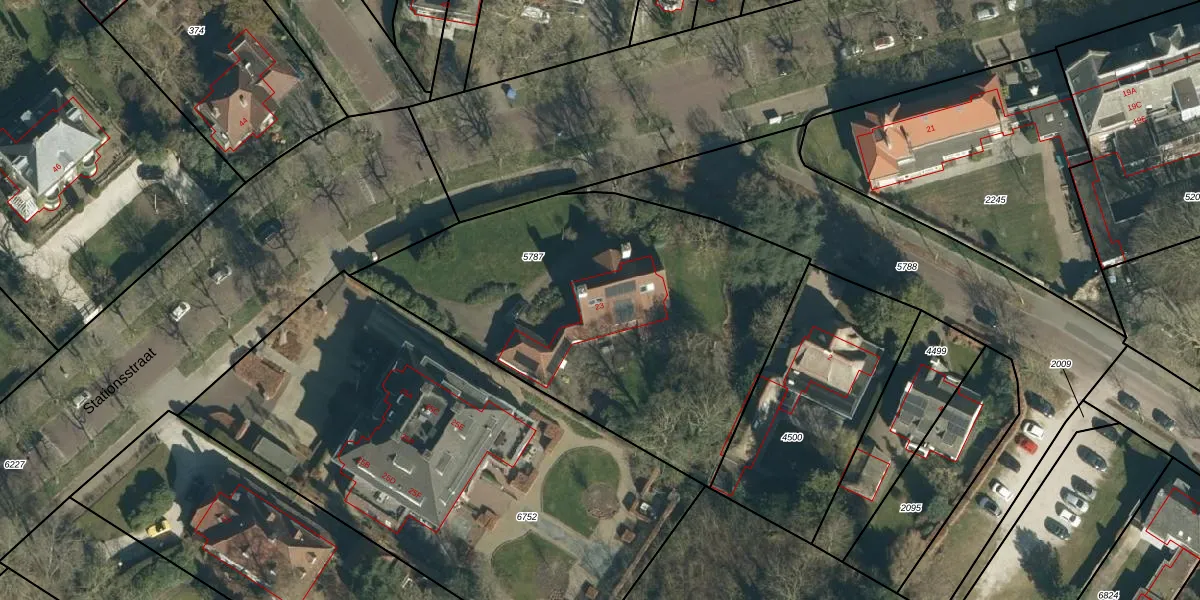 Het perceel waarop Stationsstraat 23 staat heeft een oppervlakte van 2120 m². Dit is een zeer groot perceel. De perceeloppervlakte wordt geregistreerd door het Kadaster. Gedetailleerde informatie over de maten van dit perceel kunt u vinden in het rapport Kadastrale kaart met maatvoering van Stationsstraat 23.