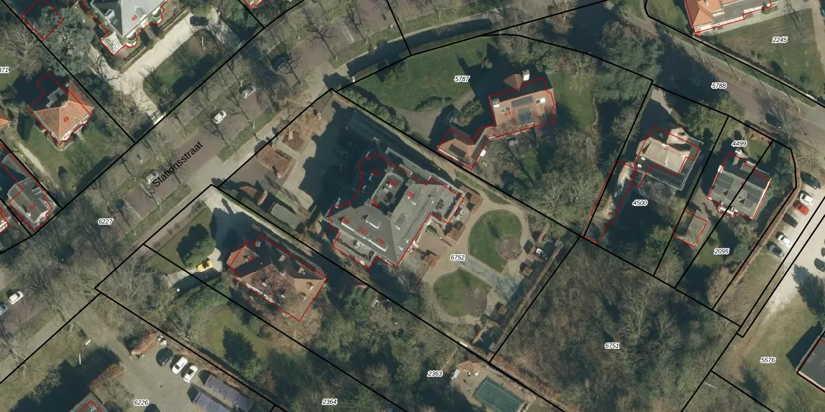 Het perceel waarop Stationsstraat 25-E staat heeft een oppervlakte van 2639 m². Dit is een zeer groot perceel. De perceeloppervlakte wordt geregistreerd door het Kadaster. Gedetailleerde informatie over de maten van dit perceel kunt u vinden in het rapport Kadastrale kaart met maatvoering van Stationsstraat 25-E.