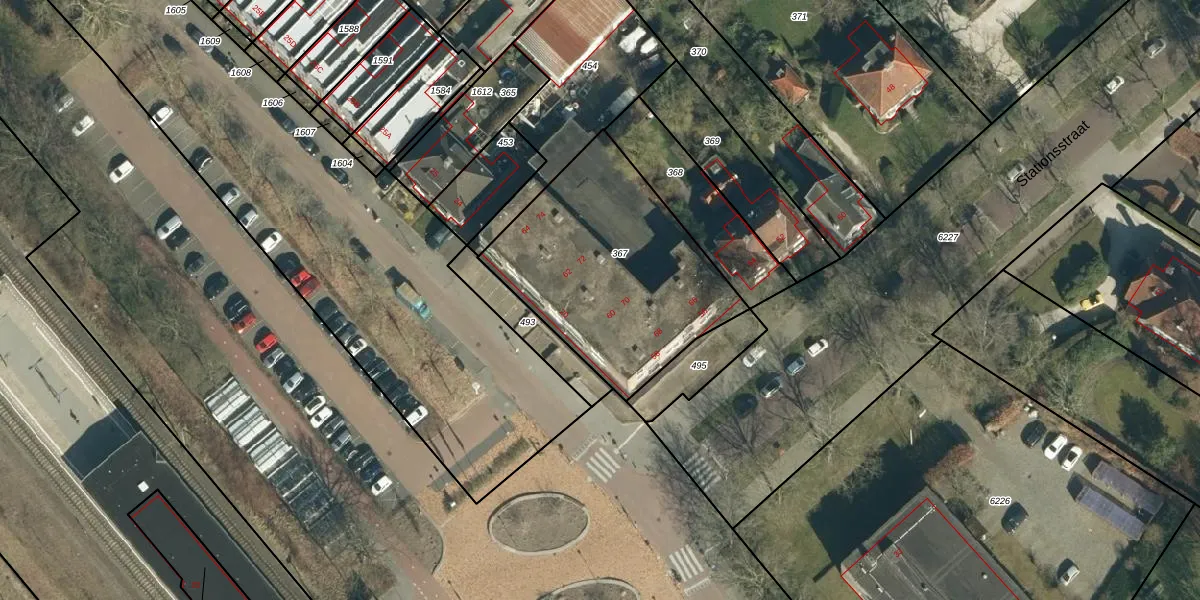 Het perceel waarop Stationsstraat 60 staat heeft een oppervlakte van 1011 m². Dit is een zeer groot perceel. De perceeloppervlakte wordt geregistreerd door het Kadaster. Gedetailleerde informatie over de maten van dit perceel kunt u vinden in het rapport Kadastrale kaart met maatvoering van Stationsstraat 60.