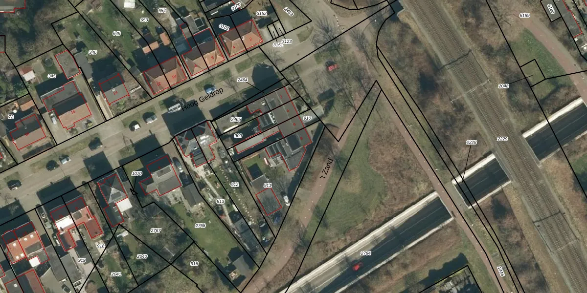 Het perceel waarop het adres ligt is GDP00-E-911. De afkorting 'GDP00' staat voor kadastrale gemeente Geldrop. Het perceel is kleiner dan gemiddeld in Geldrop. Het perceel is 530 m² groot, terwijl het gemiddelde ligt op 1101,15 m². De grootste perceeloppervlakte in de kadastrale gemeente is 51,6 ha. De kleinste oppervlakte bedraagt 0 m². Er zijn geen andere adressen aanwezig op het perceel. De huidige grenzen van het perceel zijn digitaal in de Basisregistratie Kadaster (BRK) geregistreerd op 02-06-2009.