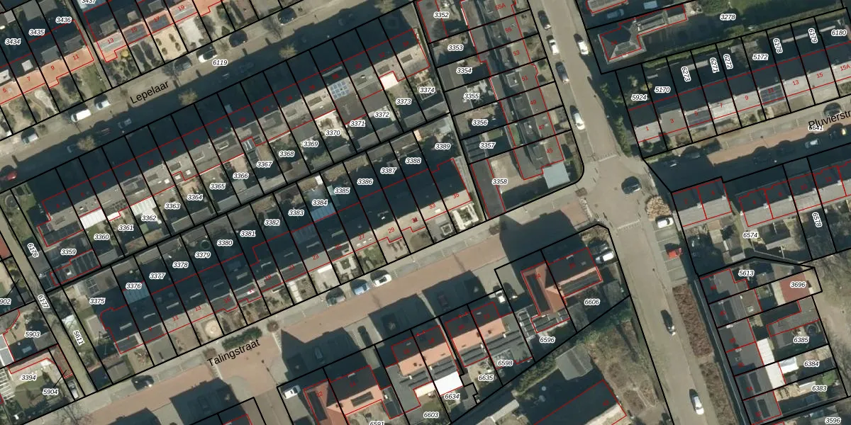 Talingstraat 33 is gelegen op kadastraal perceel GDP00C3388. Deze kadastrale aanduiding is uniek en wordt gebruikt door het Kadaster om eigendomsrechten en andere zakelijke rechten vast te leggen. Het perceel maakt onderdeel uit van de kadastrale gemeente Geldrop.