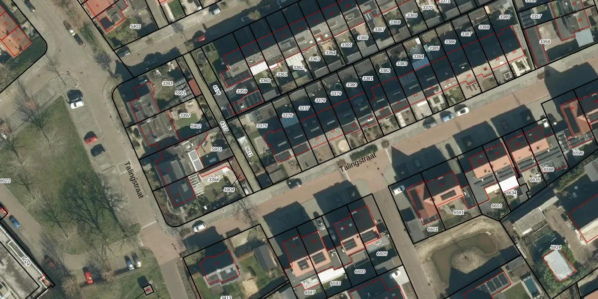 Talingstraat 9 is gelegen op kadastraal perceel GDP00C3376. Deze kadastrale aanduiding is uniek en wordt gebruikt door het Kadaster om eigendomsrechten en andere zakelijke rechten vast te leggen. Het perceel maakt onderdeel uit van de kadastrale gemeente Geldrop.