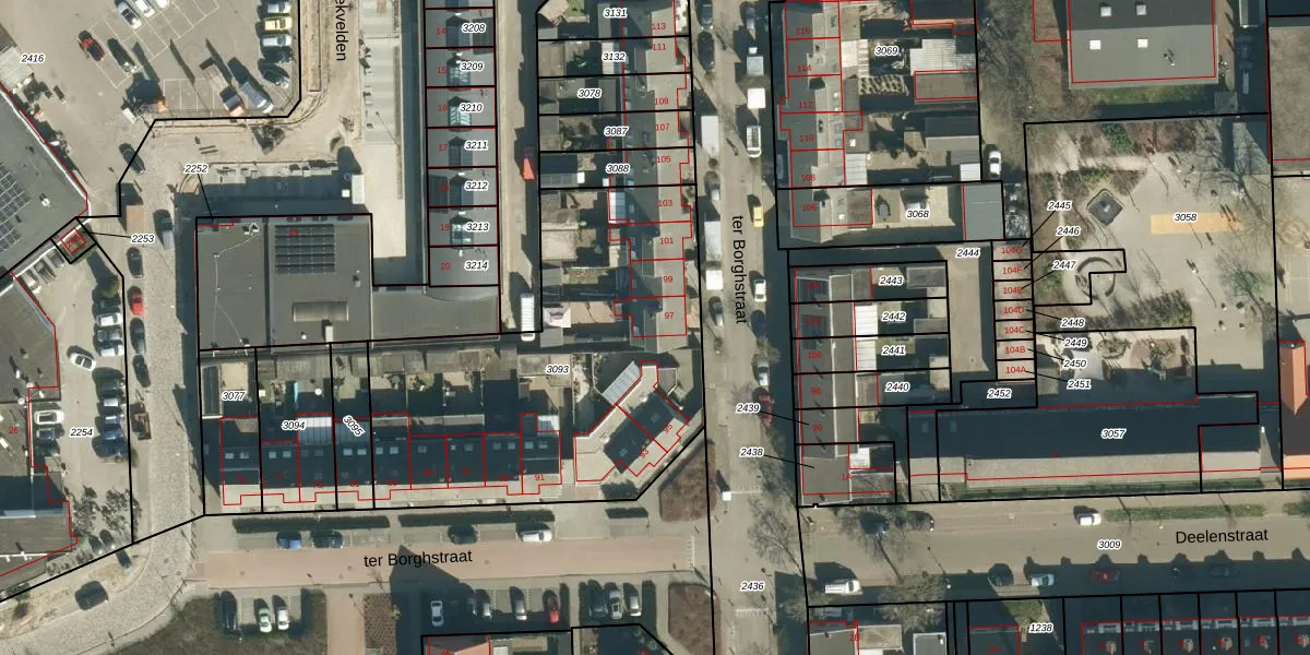 ter Borghstraat 97 is gelegen op kadastraal perceel GDP00F3093. Deze kadastrale aanduiding is uniek en wordt gebruikt door het Kadaster om eigendomsrechten en andere zakelijke rechten vast te leggen. Het perceel maakt onderdeel uit van de kadastrale gemeente Geldrop.