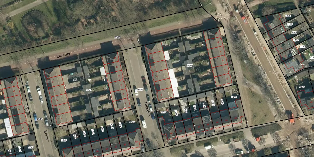 Het perceel waarop het adres ligt is GDP00-E-1557. De afkorting 'GDP00' staat voor kadastrale gemeente Geldrop. De oppervlakte van het perceel is 2047 m². Dat is groter dan gemiddeld in Geldrop, waar de gemiddelde perceeloppervlakte op 1101,06 m² ligt. De grootste perceeloppervlakte in de kadastrale gemeente is 51,6 ha. De kleinste oppervlakte bedraagt 0 m². Op het perceel liggen in totaal 12 adressen. De laatste wijziging in het de Basisregistratie Kadaster (BRK) was op 14-12-2010.