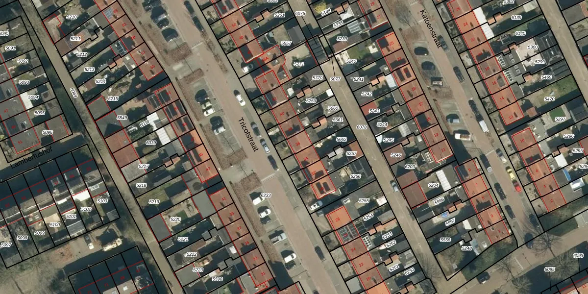 Gebruik de zoekbalk of klik op een perceel voor informatie over de adressen binnen dit perceel.