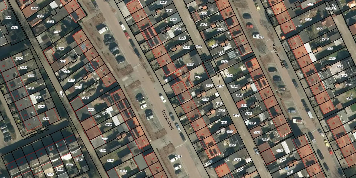 Tricotstraat 44 is gelegen op kadastraal perceel GDP00C5771. Deze kadastrale aanduiding is uniek en wordt gebruikt door het Kadaster om eigendomsrechten en andere zakelijke rechten vast te leggen. Het perceel maakt onderdeel uit van de kadastrale gemeente Geldrop.