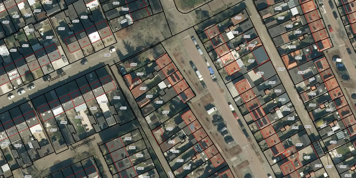 Gebruik de zoekbalk of klik op een perceel voor informatie over de adressen binnen dit perceel.