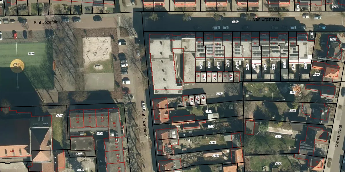 van Erpstraat 2 is gelegen op kadastraal perceel GDP00F2747. Deze kadastrale aanduiding is uniek en wordt gebruikt door het Kadaster om eigendomsrechten en andere zakelijke rechten vast te leggen. Het perceel maakt onderdeel uit van de kadastrale gemeente Geldrop.