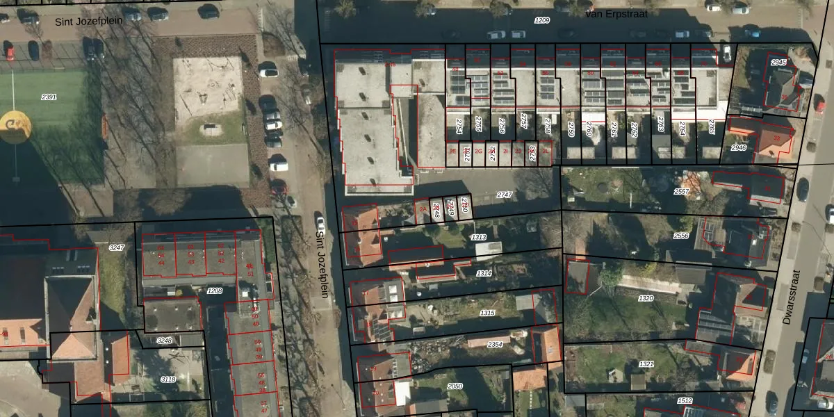 Het perceel waarop van Erpstraat 2-A staat heeft een oppervlakte van 1494 m². Dit is een zeer groot perceel. De perceeloppervlakte wordt geregistreerd door het Kadaster. Gedetailleerde informatie over de maten van dit perceel kunt u vinden in het rapport Kadastrale kaart met maatvoering van van Erpstraat 2-A.