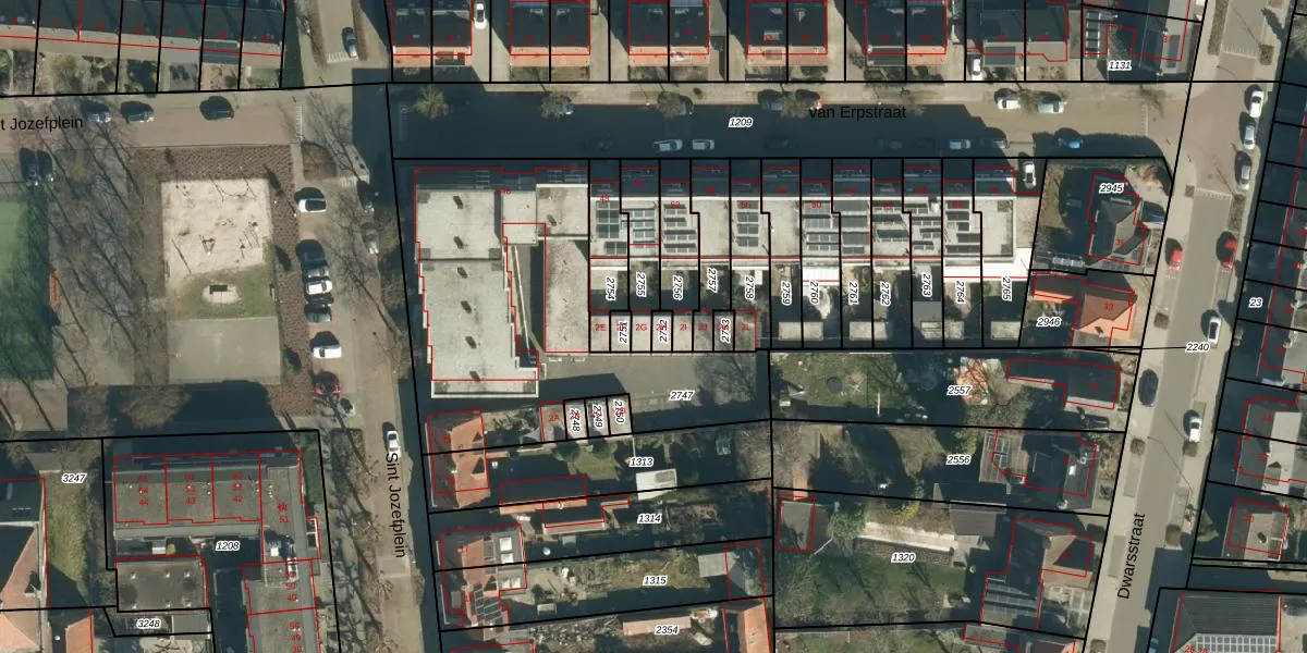 Het perceel waarop van Erpstraat 2-H staat heeft een oppervlakte van 20 m². Dit is een klein perceel. De perceeloppervlakte wordt geregistreerd door het Kadaster. Gedetailleerde informatie over de maten van dit perceel kunt u vinden in het rapport Kadastrale kaart met maatvoering van van Erpstraat 2-H.