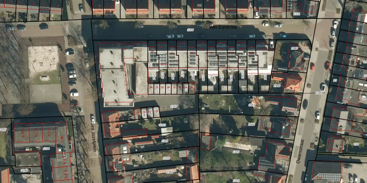 Het perceel waarop van Erpstraat 2-K staat heeft een oppervlakte van 20 m². Dit is een klein perceel. De perceeloppervlakte wordt geregistreerd door het Kadaster. Gedetailleerde informatie over de maten van dit perceel kunt u vinden in het rapport Kadastrale kaart met maatvoering van van Erpstraat 2-K.
