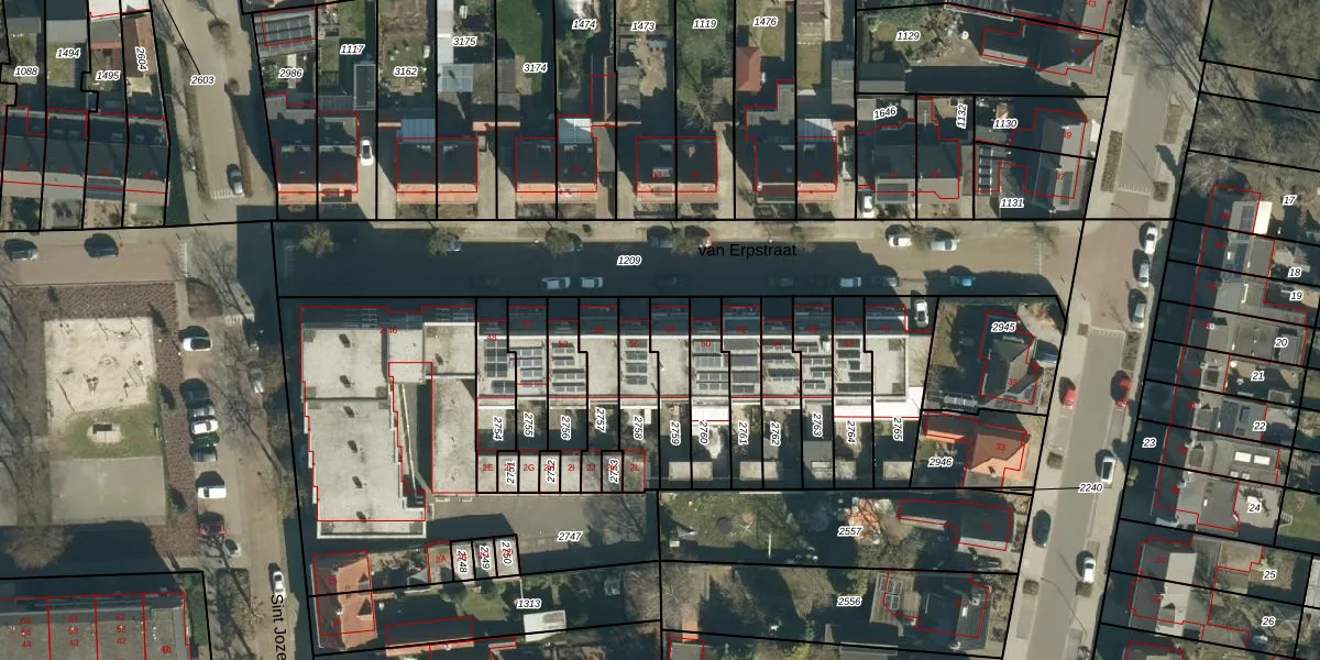 Gebruik de zoekbalk of klik op een perceel voor informatie over de adressen binnen dit perceel.