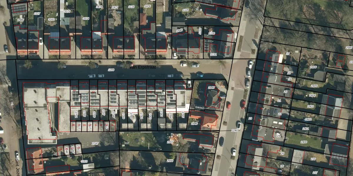 Gebruik de zoekbalk of klik op een perceel voor informatie over de adressen binnen dit perceel.