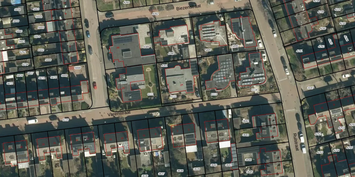 Gebruik de zoekbalk of klik op een perceel voor informatie over de adressen binnen dit perceel.