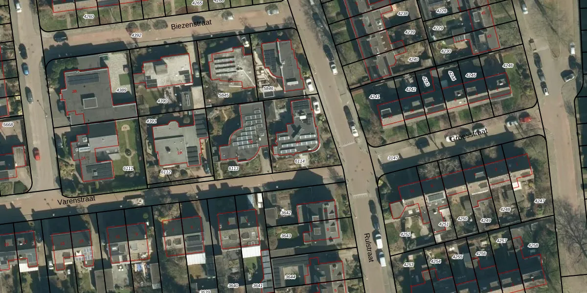 Varenstraat 2-C is gelegen op kadastraal perceel GDP00D6114. Deze kadastrale aanduiding is uniek en wordt gebruikt door het Kadaster om eigendomsrechten en andere zakelijke rechten vast te leggen. Het perceel maakt onderdeel uit van de kadastrale gemeente Geldrop.