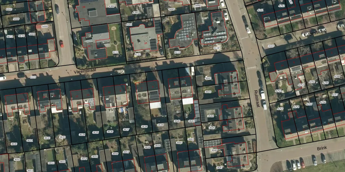 Varenstraat 3 is gelegen op kadastraal perceel GDP00D3640. Deze kadastrale aanduiding is uniek en wordt gebruikt door het Kadaster om eigendomsrechten en andere zakelijke rechten vast te leggen. Het perceel maakt onderdeel uit van de kadastrale gemeente Geldrop.