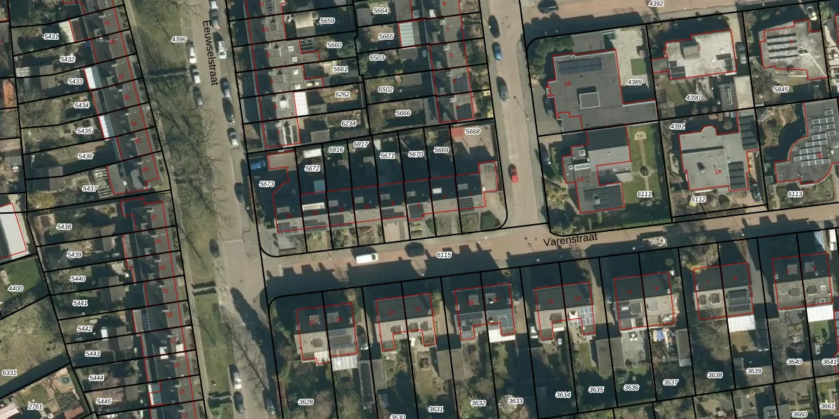 Varenstraat 6 is gelegen op kadastraal perceel GDP00D5670. Deze kadastrale aanduiding is uniek en wordt gebruikt door het Kadaster om eigendomsrechten en andere zakelijke rechten vast te leggen. Het perceel maakt onderdeel uit van de kadastrale gemeente Geldrop.