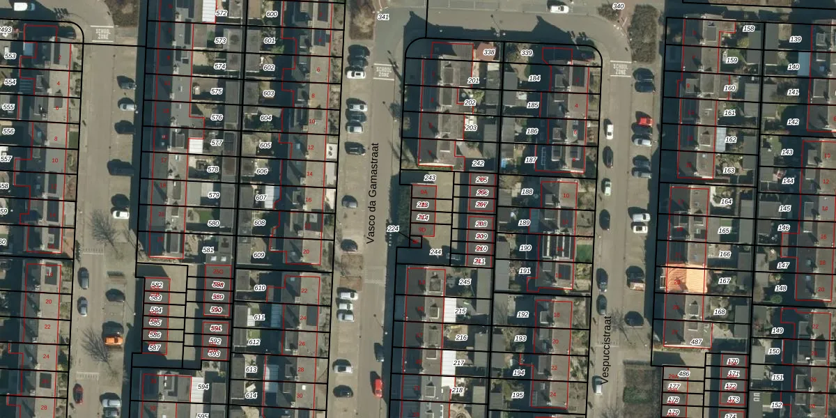 Het perceel waarop Vasco da Gamastraat 9-B staat heeft een oppervlakte van 30 m². Dit is een klein perceel. De perceeloppervlakte wordt geregistreerd door het Kadaster. Gedetailleerde informatie over de maten van dit perceel kunt u vinden in het rapport Kadastrale kaart met maatvoering van Vasco da Gamastraat 9-B.