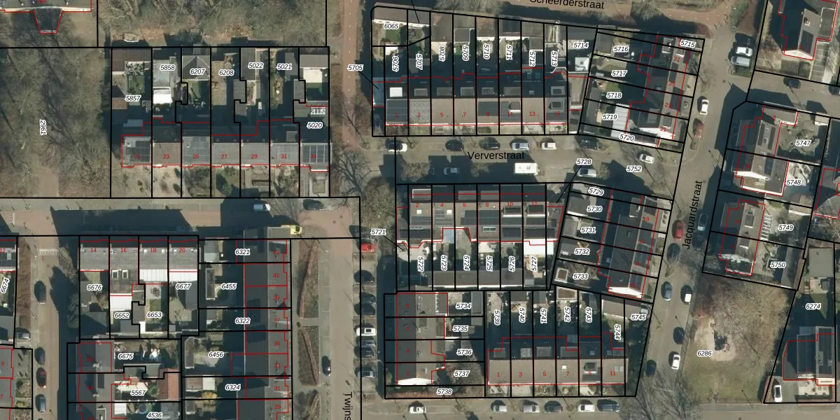 Gebruik de zoekbalk of klik op een perceel voor informatie over de adressen binnen dit perceel.