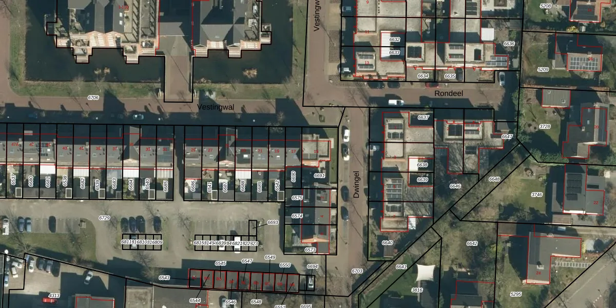 Gebruik de zoekbalk of klik op een perceel voor informatie over de adressen binnen dit perceel.
