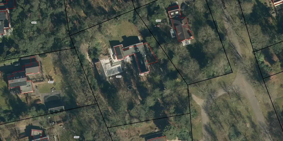 Het perceel waarop Villapark 23 staat heeft een oppervlakte van 4426 m². Dit is een zeer groot perceel. De perceeloppervlakte wordt geregistreerd door het Kadaster. Gedetailleerde informatie over de maten van dit perceel kunt u vinden in het rapport Kadastrale kaart met maatvoering van Villapark 23.