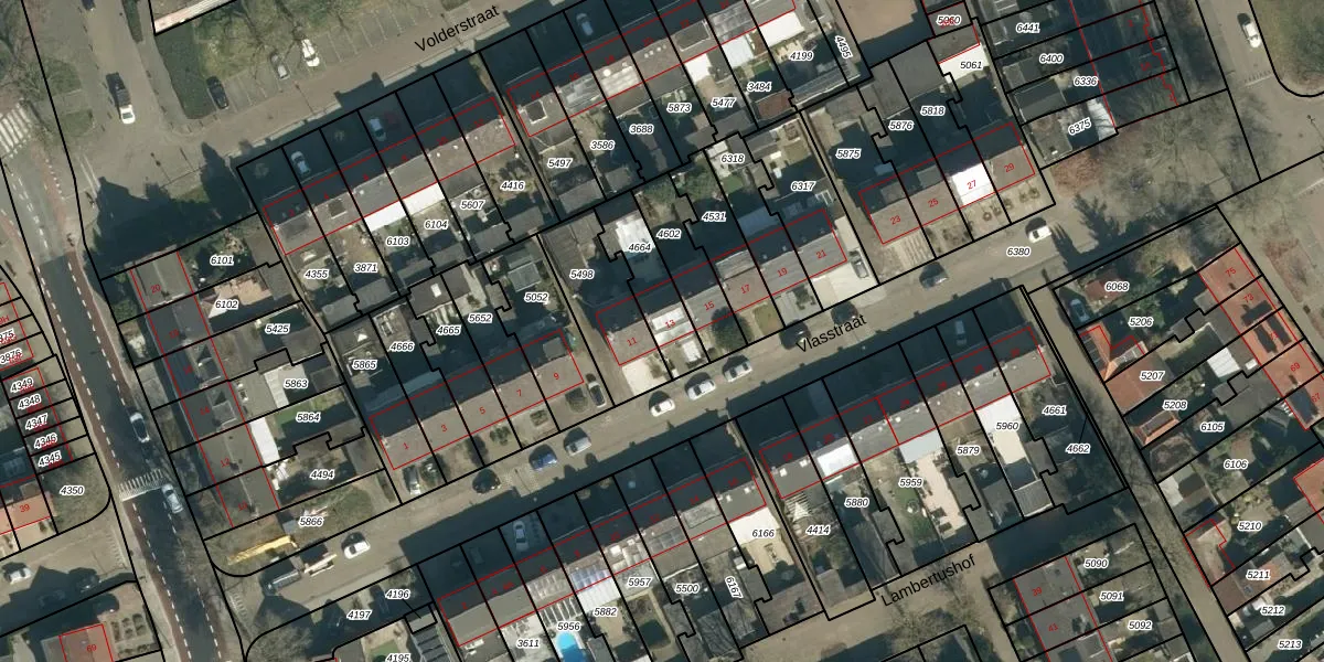 Vlasstraat 13 is gelegen op kadastraal perceel GDP00C4664. Deze kadastrale aanduiding is uniek en wordt gebruikt door het Kadaster om eigendomsrechten en andere zakelijke rechten vast te leggen. Het perceel maakt onderdeel uit van de kadastrale gemeente Geldrop.