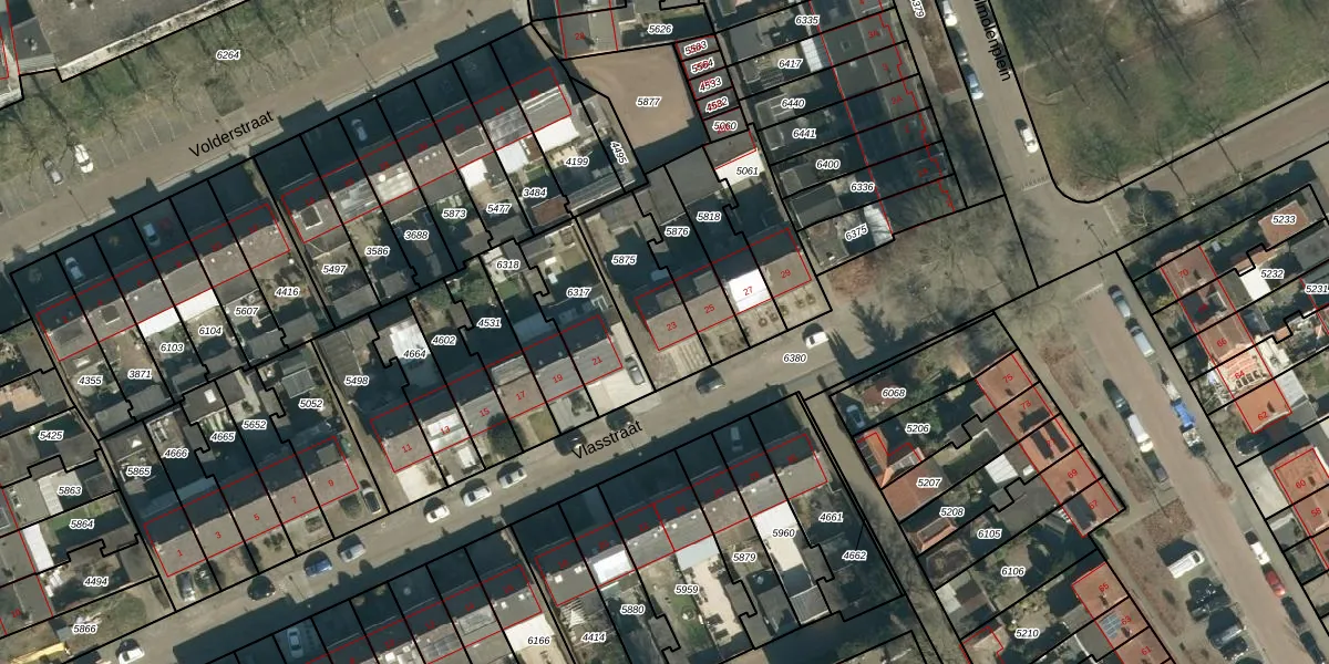 Vlasstraat 23 is gelegen op kadastraal perceel GDP00C5875. Deze kadastrale aanduiding is uniek en wordt gebruikt door het Kadaster om eigendomsrechten en andere zakelijke rechten vast te leggen. Het perceel maakt onderdeel uit van de kadastrale gemeente Geldrop.