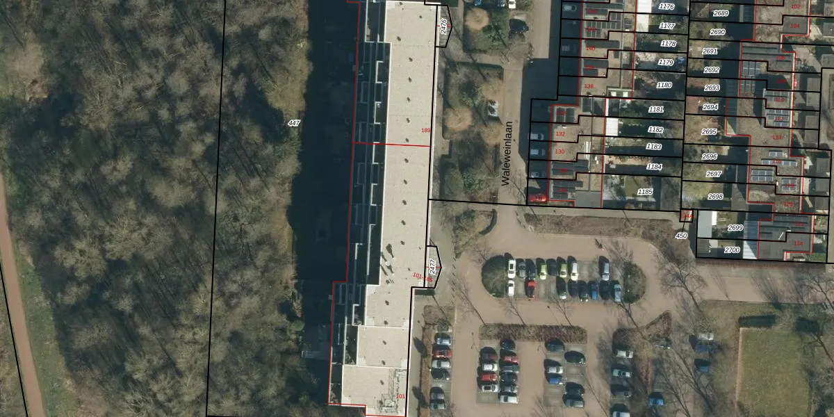 Waleweinlaan 109 is gelegen op kadastraal perceel GDP00F447. Deze kadastrale aanduiding is uniek en wordt gebruikt door het Kadaster om eigendomsrechten en andere zakelijke rechten vast te leggen. Het perceel maakt onderdeel uit van de kadastrale gemeente Geldrop.