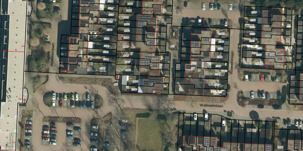 Waleweinlaan 120 is gelegen op kadastraal perceel GDP00F2698. Deze kadastrale aanduiding is uniek en wordt gebruikt door het Kadaster om eigendomsrechten en andere zakelijke rechten vast te leggen. Het perceel maakt onderdeel uit van de kadastrale gemeente Geldrop.