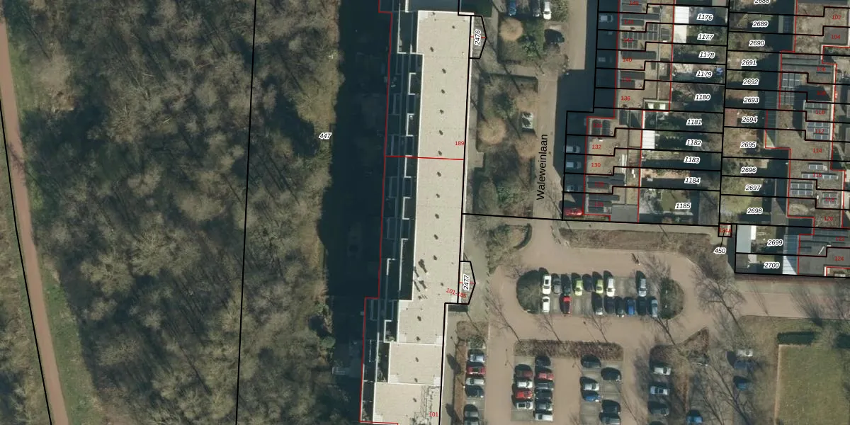 Waleweinlaan 169 is gelegen op kadastraal perceel GDP00F447. Deze kadastrale aanduiding is uniek en wordt gebruikt door het Kadaster om eigendomsrechten en andere zakelijke rechten vast te leggen. Het perceel maakt onderdeel uit van de kadastrale gemeente Geldrop.