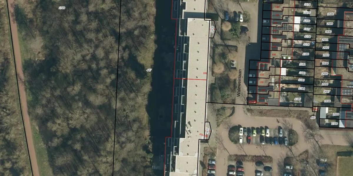 Waleweinlaan 185 is gelegen op kadastraal perceel GDP00F447. Deze kadastrale aanduiding is uniek en wordt gebruikt door het Kadaster om eigendomsrechten en andere zakelijke rechten vast te leggen. Het perceel maakt onderdeel uit van de kadastrale gemeente Geldrop.
