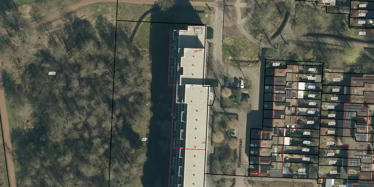 Waleweinlaan 219 is gelegen op kadastraal perceel GDP00F447. Deze kadastrale aanduiding is uniek en wordt gebruikt door het Kadaster om eigendomsrechten en andere zakelijke rechten vast te leggen. Het perceel maakt onderdeel uit van de kadastrale gemeente Geldrop.