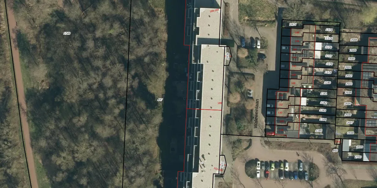 Waleweinlaan 273 is gelegen op kadastraal perceel GDP00F447. Deze kadastrale aanduiding is uniek en wordt gebruikt door het Kadaster om eigendomsrechten en andere zakelijke rechten vast te leggen. Het perceel maakt onderdeel uit van de kadastrale gemeente Geldrop.