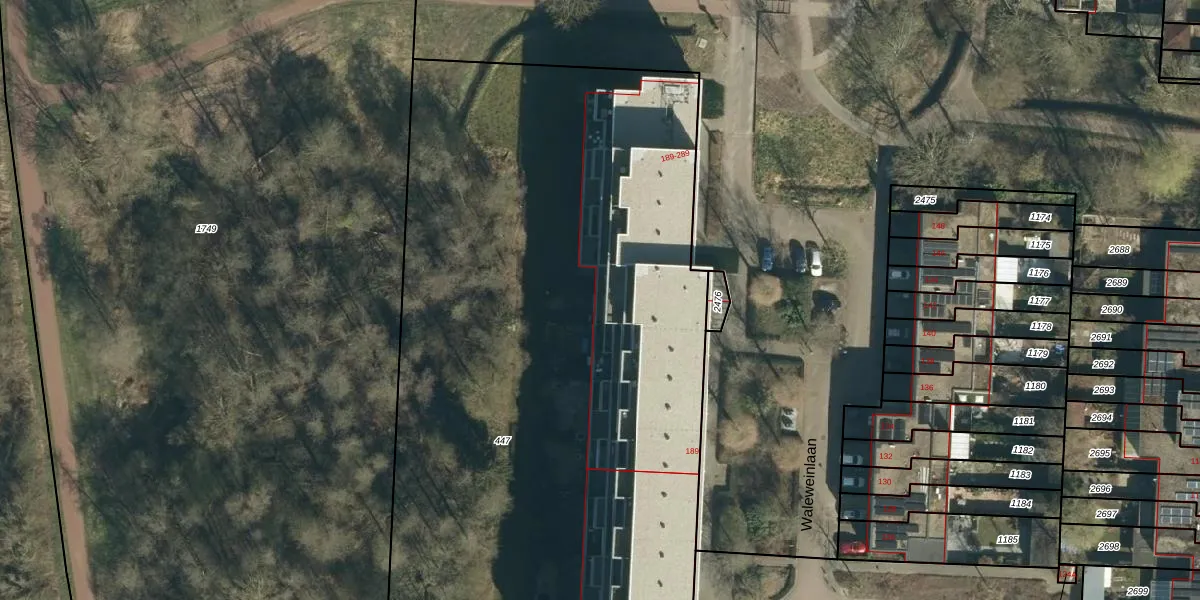 Waleweinlaan 279 is gelegen op kadastraal perceel GDP00F447. Deze kadastrale aanduiding is uniek en wordt gebruikt door het Kadaster om eigendomsrechten en andere zakelijke rechten vast te leggen. Het perceel maakt onderdeel uit van de kadastrale gemeente Geldrop.