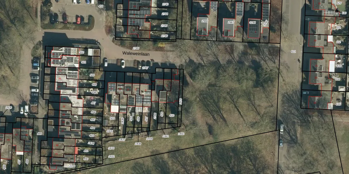 Waleweinlaan 3 is gelegen op kadastraal perceel GDP00F510. Deze kadastrale aanduiding is uniek en wordt gebruikt door het Kadaster om eigendomsrechten en andere zakelijke rechten vast te leggen. Het perceel maakt onderdeel uit van de kadastrale gemeente Geldrop.