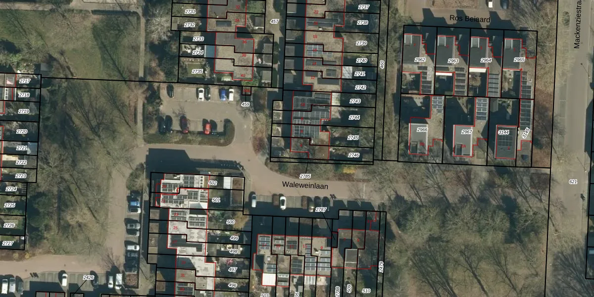 Gebruik de zoekbalk of klik op een perceel voor informatie over de adressen binnen dit perceel.
