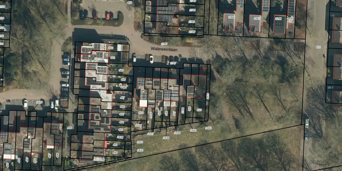 Waleweinlaan 9 is gelegen op kadastraal perceel GDP00F507. Deze kadastrale aanduiding is uniek en wordt gebruikt door het Kadaster om eigendomsrechten en andere zakelijke rechten vast te leggen. Het perceel maakt onderdeel uit van de kadastrale gemeente Geldrop.