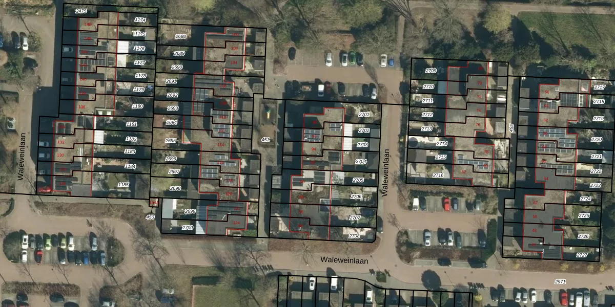 Waleweinlaan 94 is gelegen op kadastraal perceel GDP00F2703. Deze kadastrale aanduiding is uniek en wordt gebruikt door het Kadaster om eigendomsrechten en andere zakelijke rechten vast te leggen. Het perceel maakt onderdeel uit van de kadastrale gemeente Geldrop.
