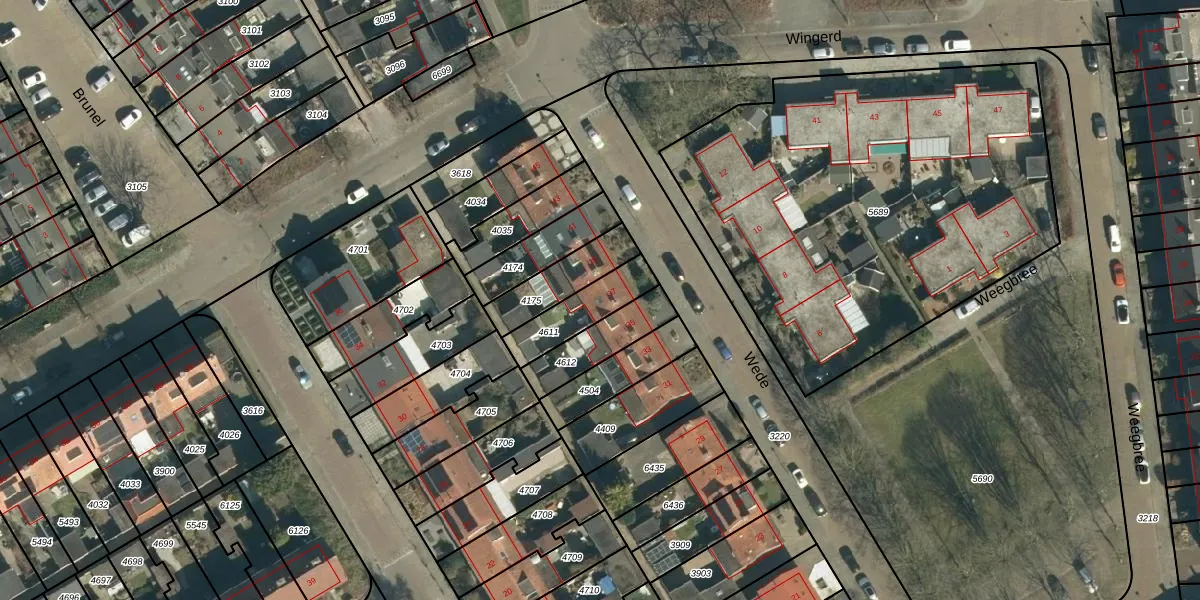 Gebruik de zoekbalk of klik op een perceel voor informatie over de adressen binnen dit perceel.