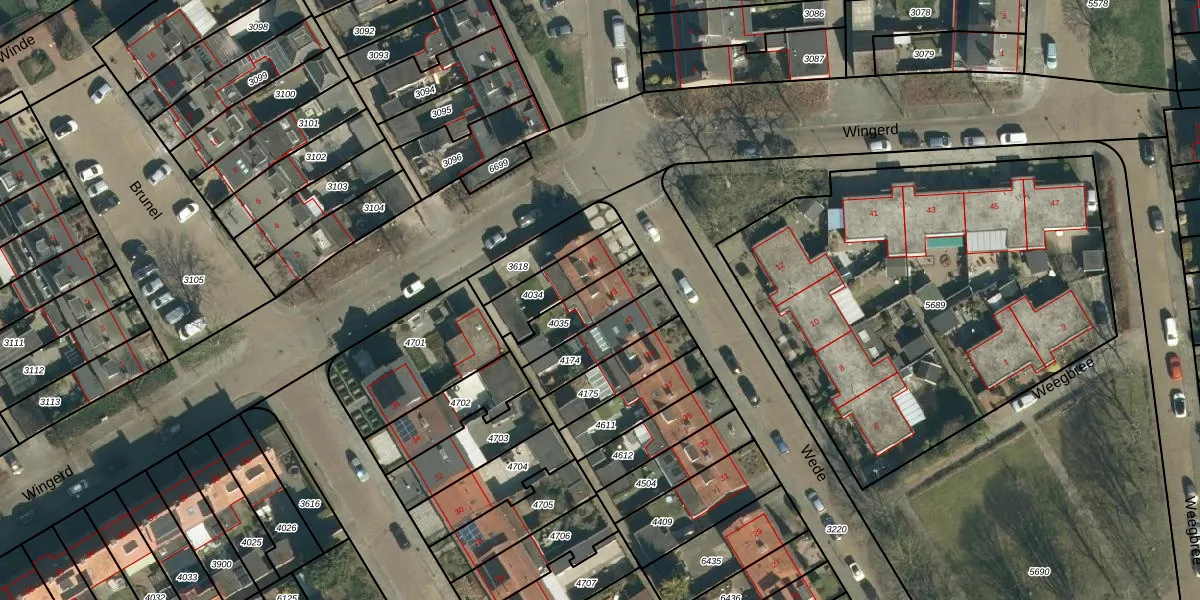 Het perceel waarop Wede 43 staat heeft een oppervlakte van 157 m². Dit is een middelgroot perceel. De perceeloppervlakte wordt geregistreerd door het Kadaster. Gedetailleerde informatie over de maten van dit perceel kunt u vinden in het rapport Kadastrale kaart met maatvoering van Wede 43.
