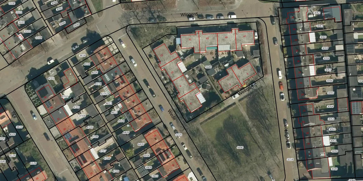 Het perceel waarop Wede 8 staat heeft een oppervlakte van 2389 m². Dit is een zeer groot perceel. De perceeloppervlakte wordt geregistreerd door het Kadaster. Gedetailleerde informatie over de maten van dit perceel kunt u vinden in het rapport Kadastrale kaart met maatvoering van Wede 8.