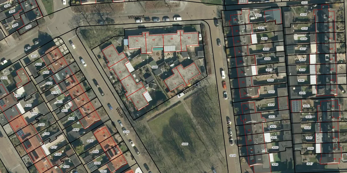 Weegbree 1 is gelegen op kadastraal perceel GDP00C5689. Deze kadastrale aanduiding is uniek en wordt gebruikt door het Kadaster om eigendomsrechten en andere zakelijke rechten vast te leggen. Het perceel maakt onderdeel uit van de kadastrale gemeente Geldrop.