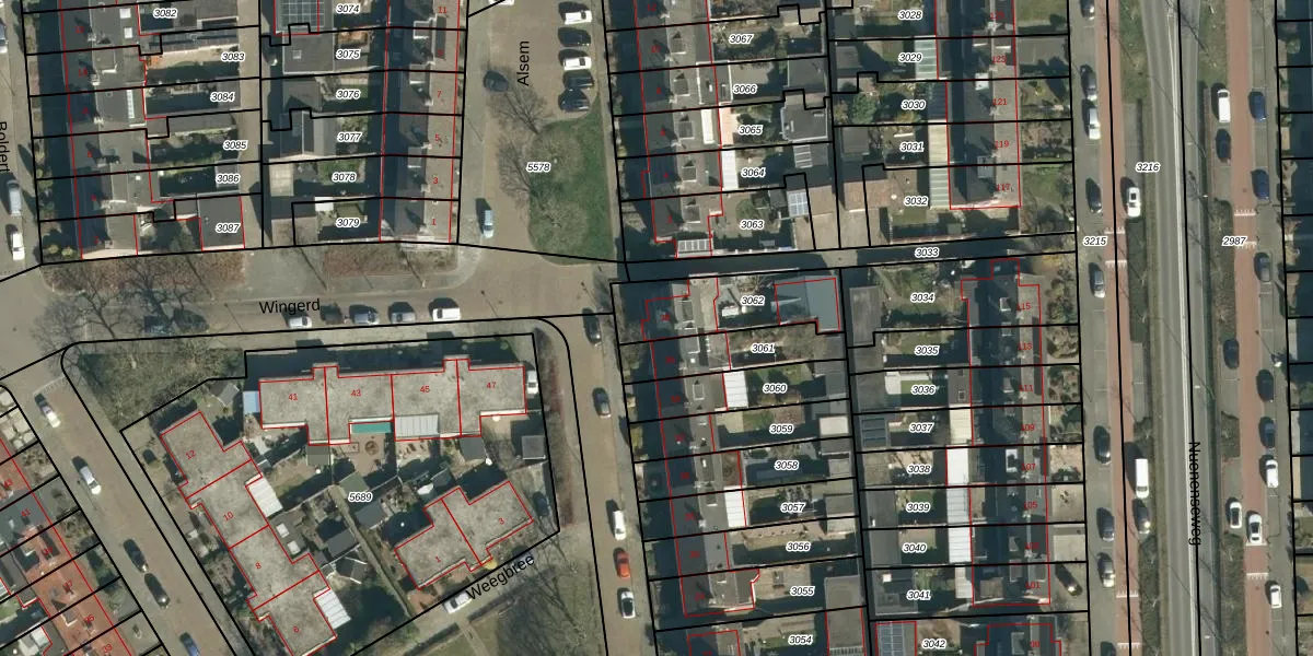 Het perceel waarop Weegbree 38 staat heeft een oppervlakte van 305 m². Dit is een groot perceel. De perceeloppervlakte wordt geregistreerd door het Kadaster. Gedetailleerde informatie over de maten van dit perceel kunt u vinden in het rapport Kadastrale kaart met maatvoering van Weegbree 38.