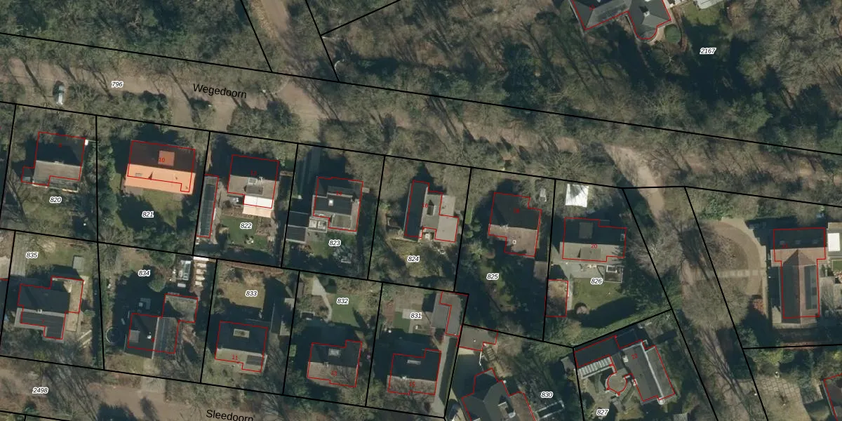Het perceel waarop Wegedoorn 16 staat heeft een oppervlakte van 629 m². Dit is een groot perceel. De perceeloppervlakte wordt geregistreerd door het Kadaster. Gedetailleerde informatie over de maten van dit perceel kunt u vinden in het rapport Kadastrale kaart met maatvoering van Wegedoorn 16.