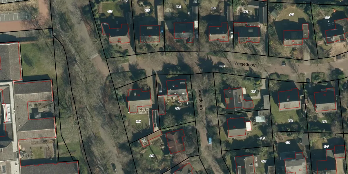 Het perceel waarop Wegedoorn 31 staat heeft een oppervlakte van 598 m². Dit is een groot perceel. De perceeloppervlakte wordt geregistreerd door het Kadaster. Gedetailleerde informatie over de maten van dit perceel kunt u vinden in het rapport Kadastrale kaart met maatvoering van Wegedoorn 31.