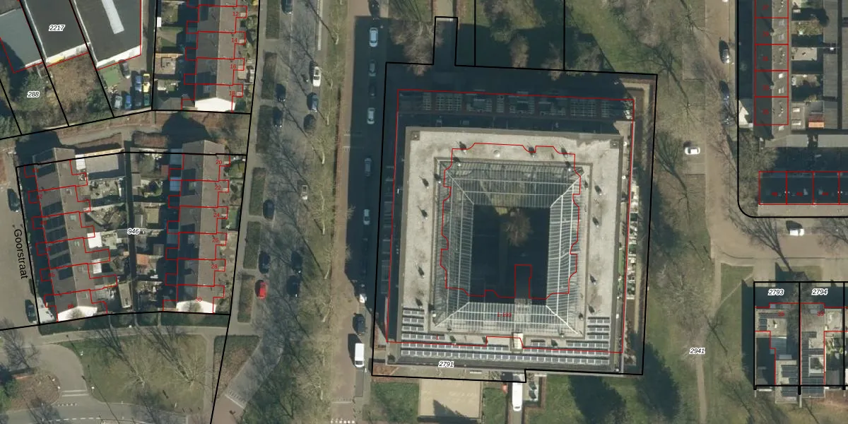 Het perceel waarop het adres ligt is GDP00-F-2791. De afkorting 'GDP00' staat voor kadastrale gemeente Geldrop. De oppervlakte van het perceel is 4690 m². Dat is groter dan gemiddeld in Geldrop, waar de gemiddelde perceeloppervlakte op 1101,06 m² ligt. De grootste perceeloppervlakte in de kadastrale gemeente is 51,6 ha. De kleinste oppervlakte bedraagt 0 m². Op het perceel zijn 98 adressen aanwezig. De laatste wijziging in het de Basisregistratie Kadaster (BRK) was op 18-06-2009.