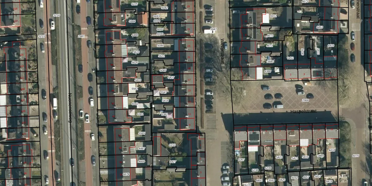 Het perceel waarop Weverstraat 15 staat heeft een oppervlakte van 142 m². Dit is een middelgroot perceel. De perceeloppervlakte wordt geregistreerd door het Kadaster. Gedetailleerde informatie over de maten van dit perceel kunt u vinden in het rapport Kadastrale kaart met maatvoering van Weverstraat 15.