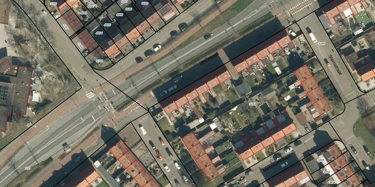 Het perceel waarop Wielewaal 22 staat heeft een oppervlakte van 4935 m². Dit is een zeer groot perceel. De perceeloppervlakte wordt geregistreerd door het Kadaster. Gedetailleerde informatie over de maten van dit perceel kunt u vinden in het rapport Kadastrale kaart met maatvoering van Wielewaal 22.
