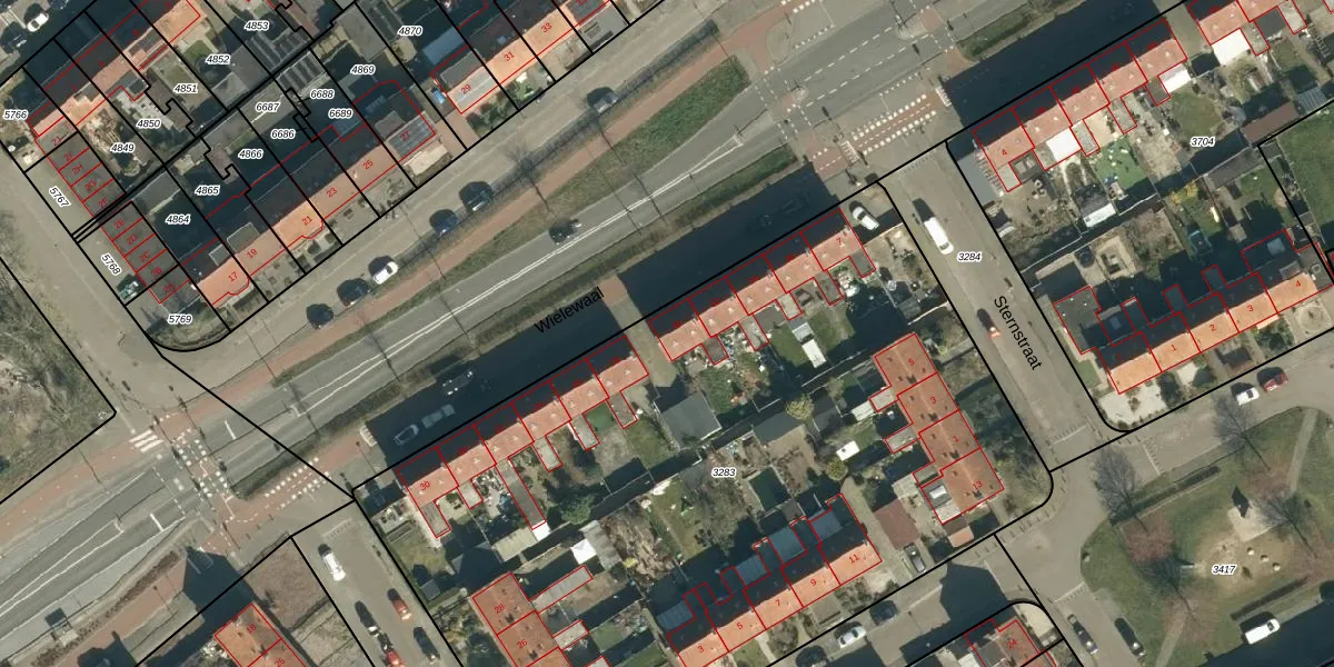 Het perceel waarop Wielewaal 30 staat heeft een oppervlakte van 4935 m². Dit is een zeer groot perceel. De perceeloppervlakte wordt geregistreerd door het Kadaster. Gedetailleerde informatie over de maten van dit perceel kunt u vinden in het rapport Kadastrale kaart met maatvoering van Wielewaal 30.